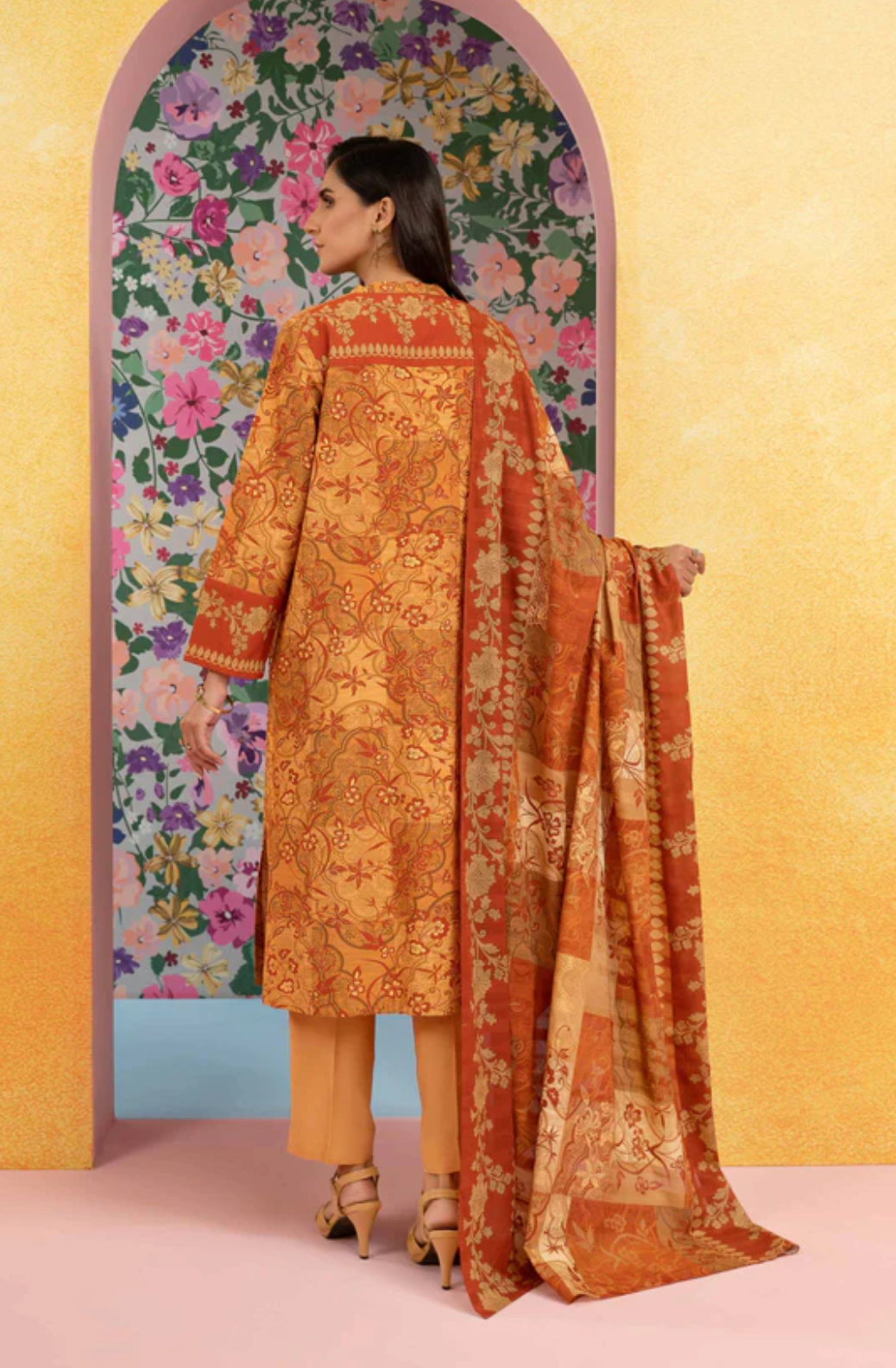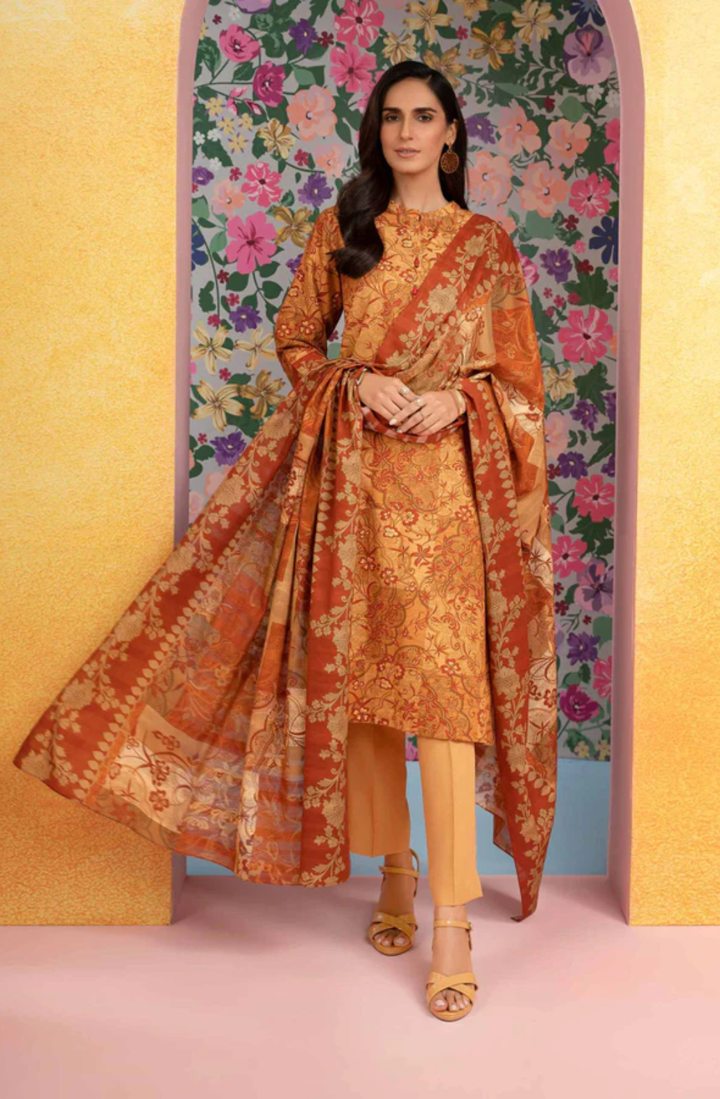Build your core wardrobe with this printed three-piece from the latest unstitched summer collection.