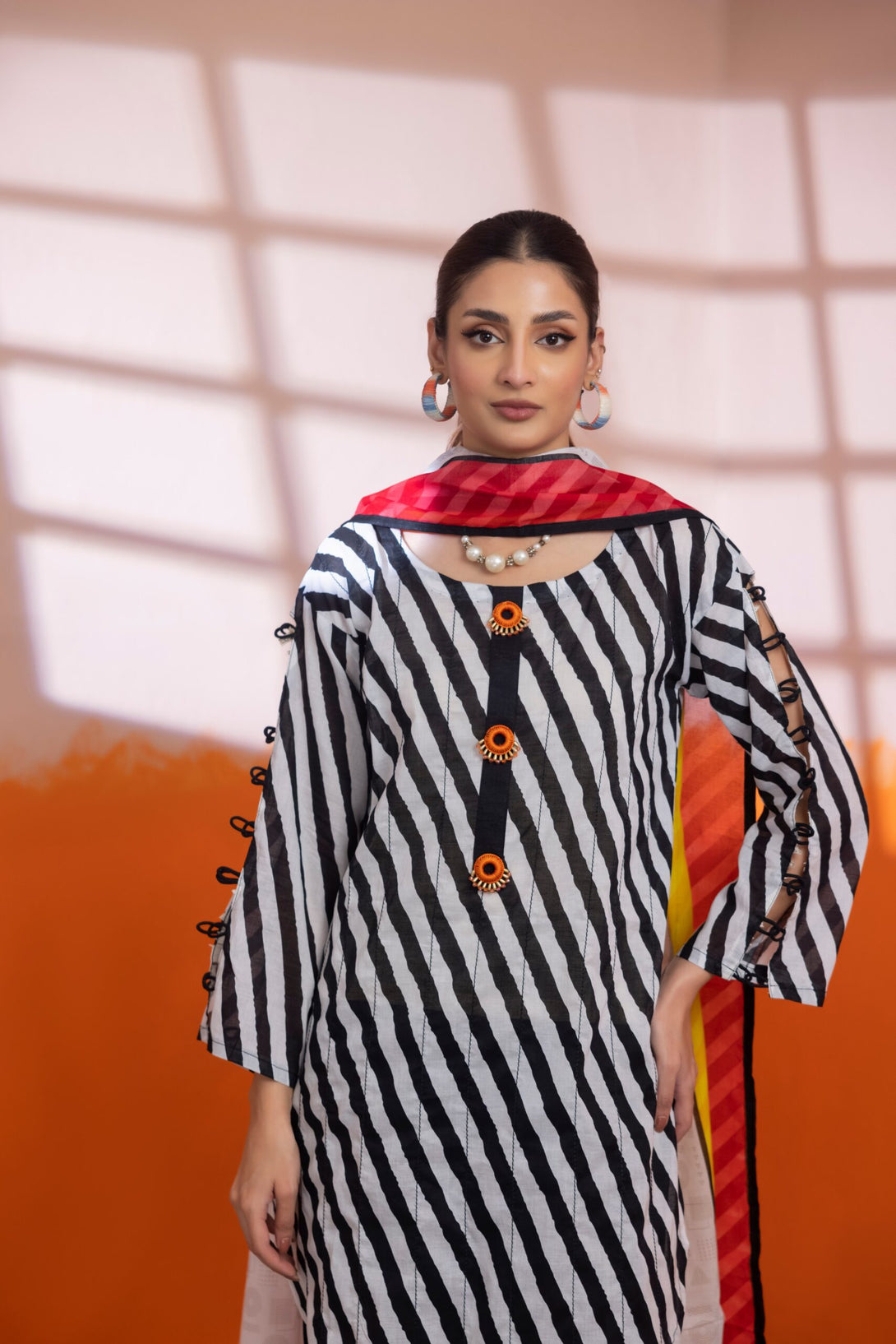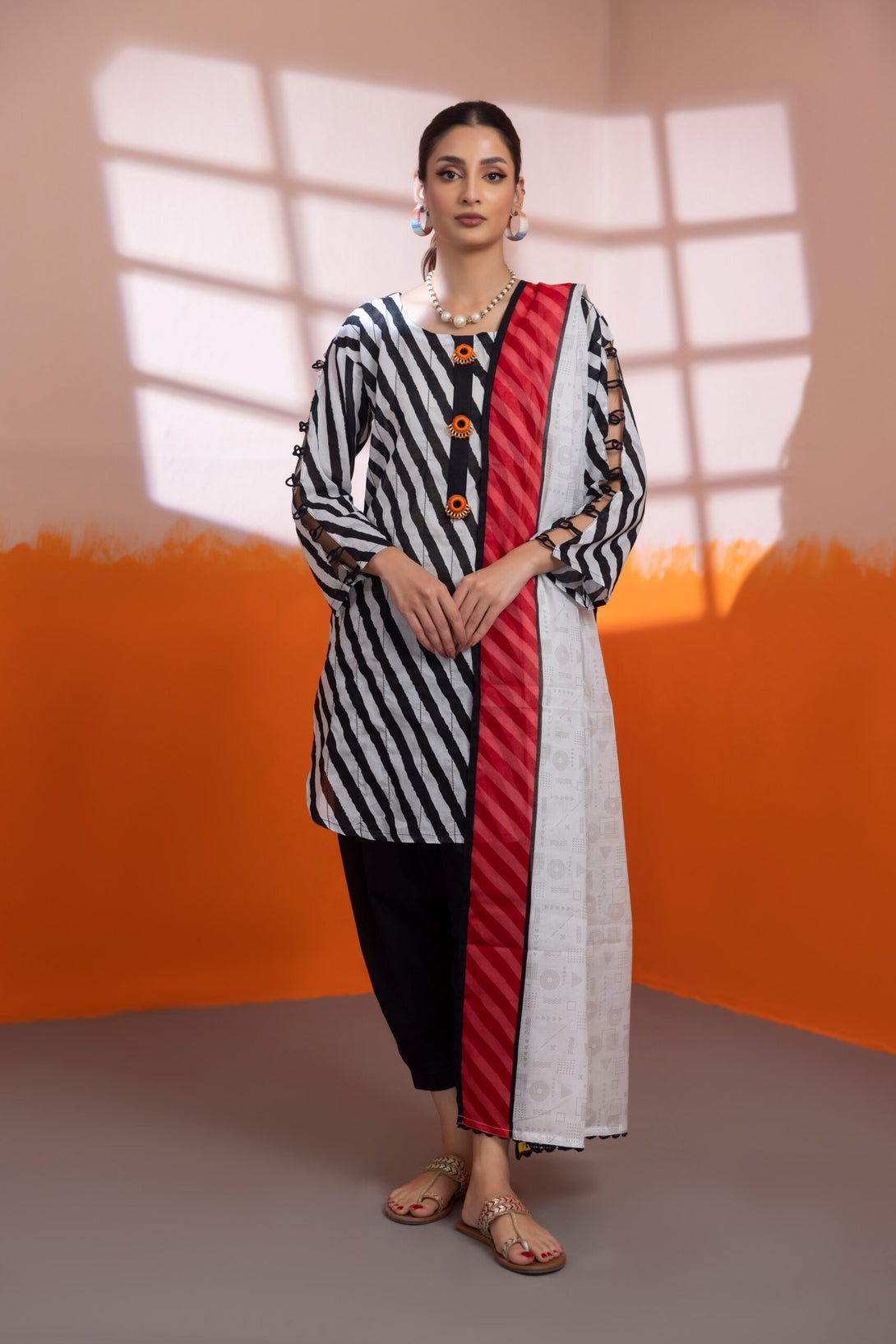 Create a decent look with this printed three-piece from the latest unstitched summer collection.